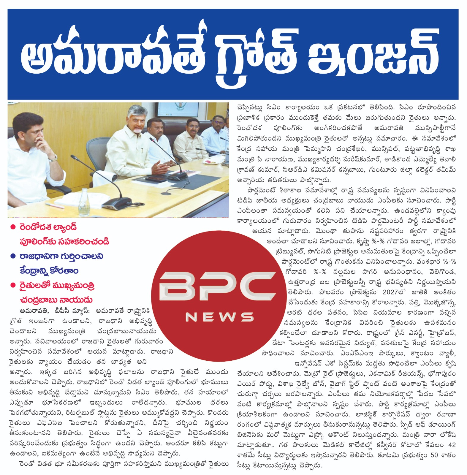 క్లిప్పింగ్స్ అమరావతే గ్రోత్ ఇంజన్ bpcnews 2 months ago (Last updated: 2 months ago) 0 comments About the Author bpcnews Administrator View All Posts Post navigation Previous: మహాత్మా జ్యోతిరావ్ పూలేకు వైఎస్ జగన్ నివాళిNext: రష్యా అధ్యక్షుడు వ్లాదిమిర్ పుతిన్ భారత పర్యటన Leave a Reply Cancel replyYour email address will not be published. Required fields are marked *Comment * Name * Email * Website Save my name, email, and website in this browser for the next time I comment. Related Stories Uncategorized క్లిప్పింగ్స్ bpcnews 1 month ago 0 క్లిప్పింగ్స్ bpcnews 1 month ago 0
